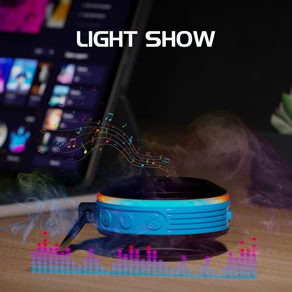 Bluetooth Shower Speaker, IPX7 Waterproof Portable Speaker with LED Light, Suction Cup, Hook, Stereo Sound, True Wireless Stereo Mini Speaker with Built-in Mic, FM Radio, for Bathroom, Pool, Outdoors