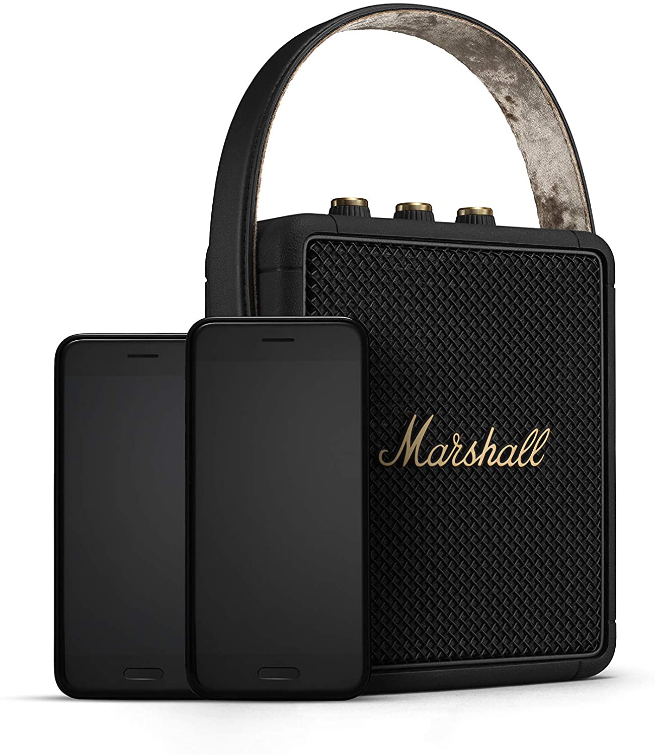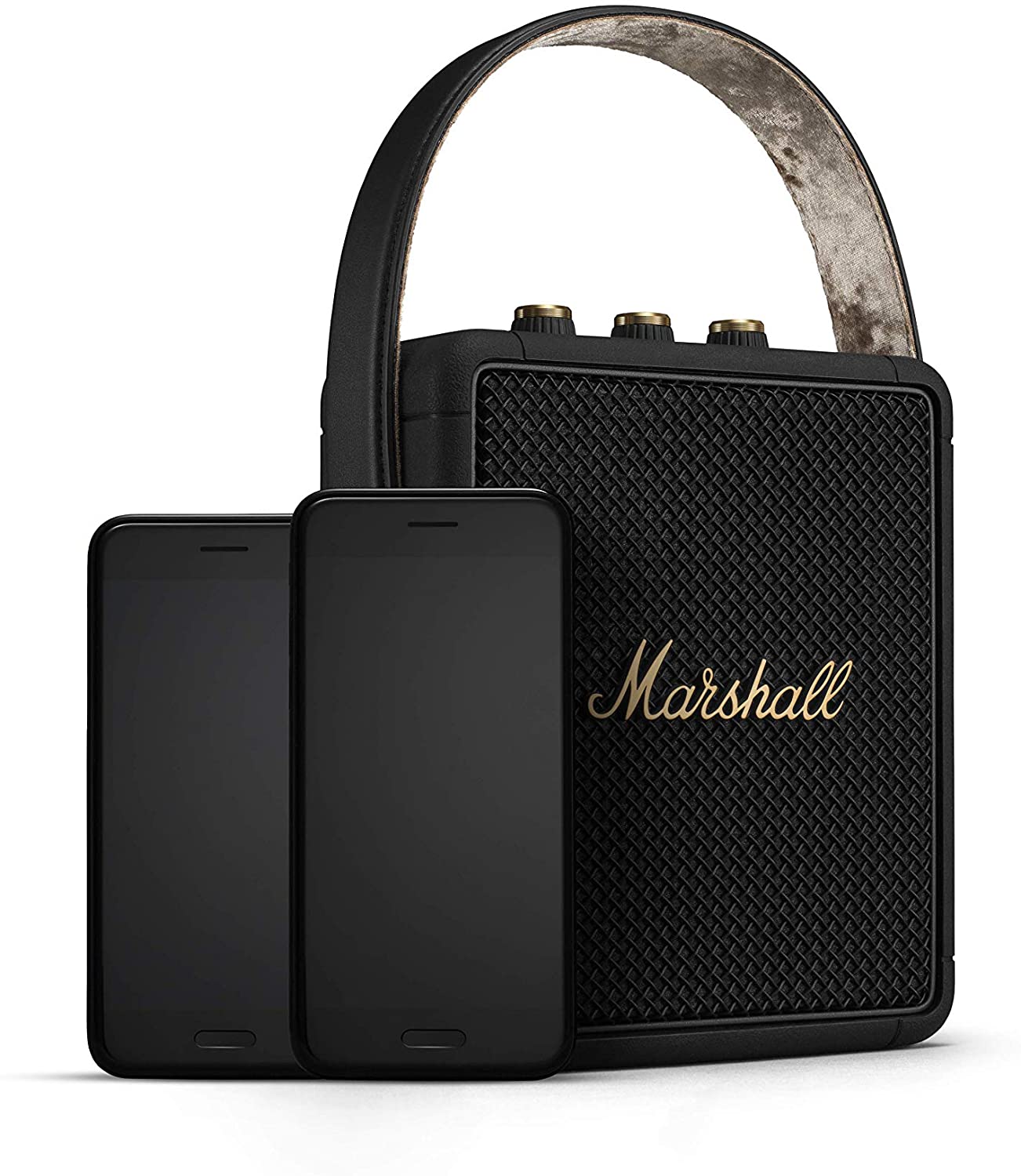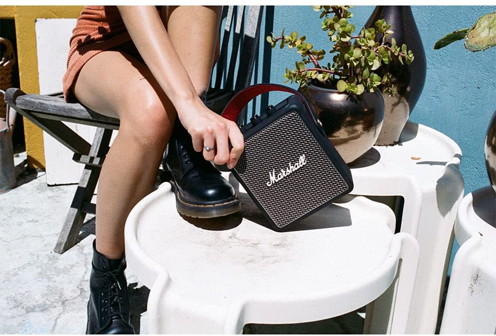 Built for life on the road, this compact portable speaker offers 20+hours of playtime. Weighing only 2.2 lbs, Stockwell II packs a solid punch despite its pint-sized frame. Stockwell II utilizes True Stereophonic, a unique form of multi-directional sound from Marshall. Experience absolute 360° sound where every spot is a sweet spot. Three class D amplifiers power its subwoofer, front and rear facing tweeters, for a sound that’s brilliantly powerful and clear. In addition, Bluetooth® 5.0 technology allows you to connect to a variety of wireless devices with a range of 30ft. Echoing the legacy of rock ‘n’ roll, Stockwell II has a solid metal grille that pays homage to the steel mesh grille found on many microphones and a guitar inspired carry strap for easy portability. Its roadworthy construction with silicone exterior and IPX4 water-resistant rating make it extremely rugged and durable. Take it with you wherever the long road leads.